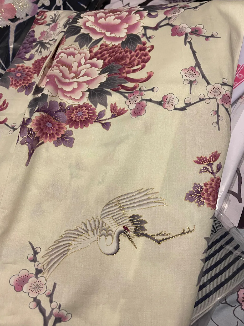 Women Flying Crane & Peony Cotton Sateen Kimono